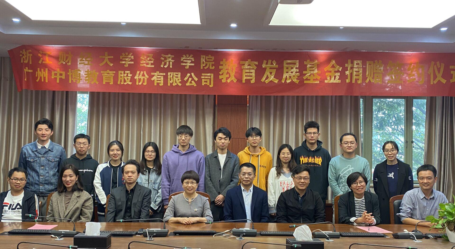 10月22日下午,学院与广州中博教育股份有限公司在学院楼210会议室举行教育发展基金捐赠签约仪式。广州中博教育股份有限公司CEO王小和、浙江分公司总经理邱芳、市场经理朱冬雪、公考事业部总监李玉生、经理王正新、党委书记胡亦琴、副经理罗俊、学办主任李伶俐、团委书记曹仲晔、辅导员俞一献与部分员工代表参加了本次签约仪式。会议由党委副书记崔泰铭主持。